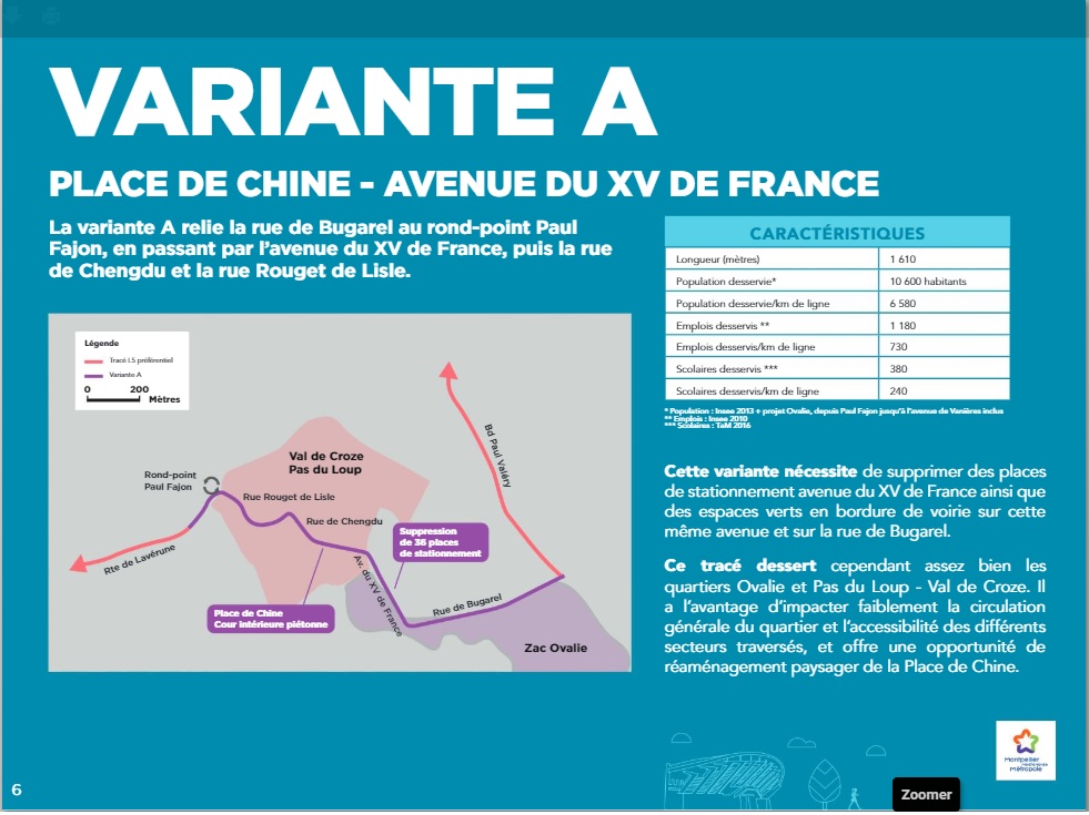 Variante A recalée le mercredi 27 juin 2018 puis approuvée le jeudi 24 janvier 2019. Document Montpellier Méditerranée Métropole