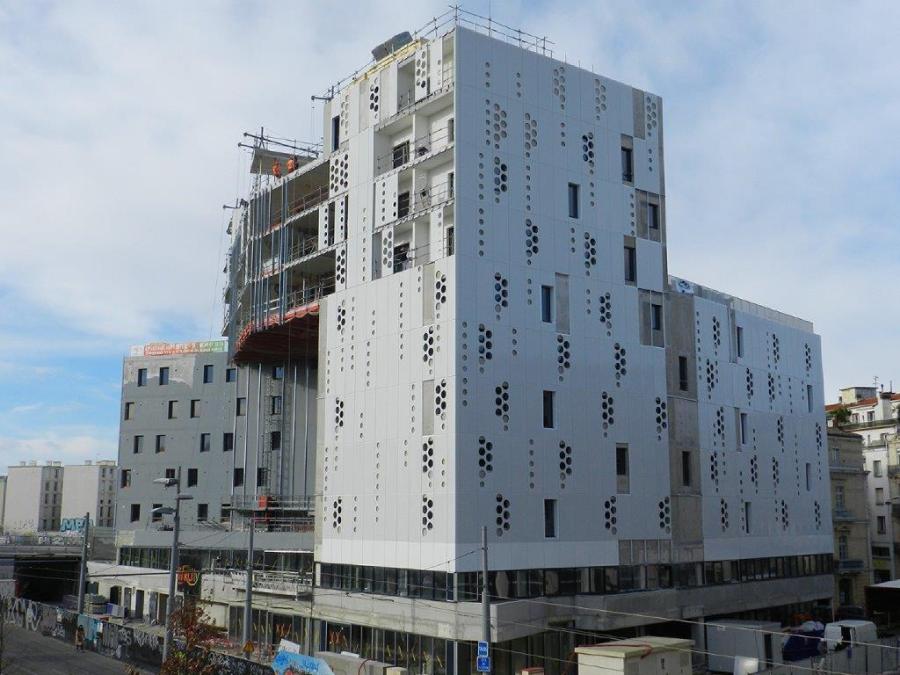 Vue sur l’ensemble architectural en construction « Hôtel St-Roch – Belaroia » à Montpellier, depuis une terrasse de la gare Saint-Roch, le vendredi 18 janvier 2019. Copyright : Anje34