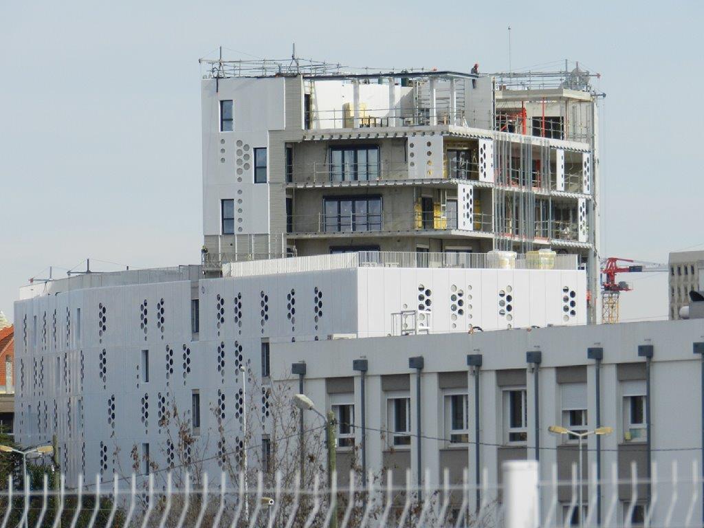 Zoom sur l’ensemble architectural en construction « Hôtel St-Roch – Belaroia » à Montpellier, depuis l’avenue de Maurin, le vendredi 18 janvier 2019. Copyright : Anje34