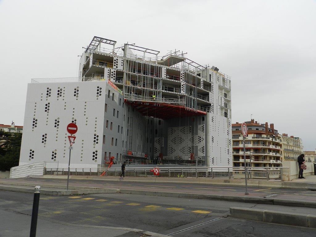 Vue sur l’ensemble architectural en construction « Hôtel St-Roch – Belaroia » à Montpellier, depuis le Pont-de-Sète, le mardi 29 janvier 2019. Copyright : Anje34