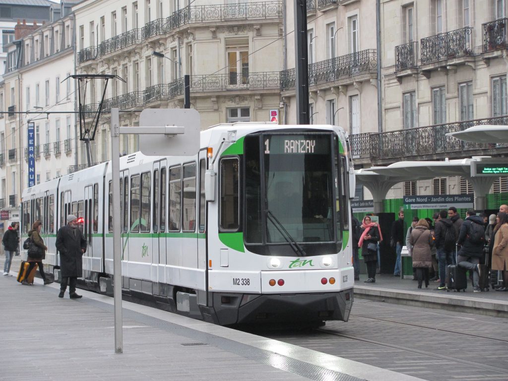 La rame 338 GEC-Alsthom, opérant sur la ligne 1 à destination du terminus « Ranzay », est photographiée à la station « Gare Nord – Jardin des Plantes », anciennement « Gare SNCF », le lundi 7 janvier 2019. Copyright : Edouard Paris