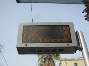 - Tableau électronique d’information à la station « Gare Saint-Roch », quai directions « Mosson » ligne 1 et « Jacou » ligne 2, photographié le samedi 9 février 2019 à 14h33. Copyright : Edouard Paris