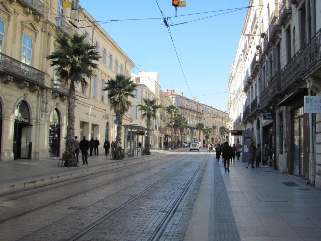 Plus aucun tramway de la ligne 4 sur le boulevard du Jeu-de-Paume, acte XIV des gilets jaunes oblige, le samedi 16 février 2019 à 14h39. Copyright : Edouard Paris