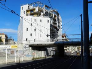 Vue depuis le Pont-de-Sète à Montpellier de l’ensemble architectural en cours de construction « Hôtel St-Roch – Belaroia ». Situation au samedi 23 février 2019. Copyright : Edouard Paris