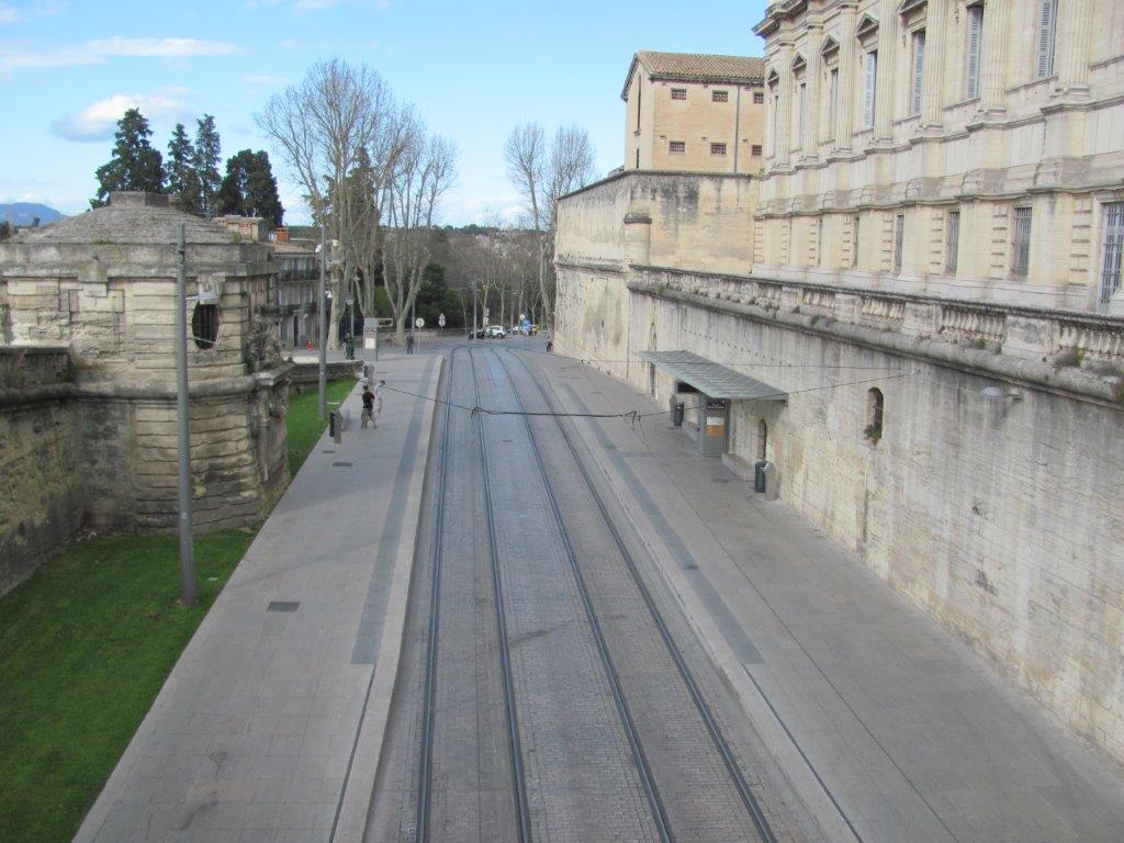 Station fantôme « Peyrou – Arc de Triomphe » de la ligne 4 de tramway photographiée le samedi 2 mars 2019 à 15h10, jour de manifestation de gilets jaunes en centre-ville de Montpellier. Copyright : Edouard Paris