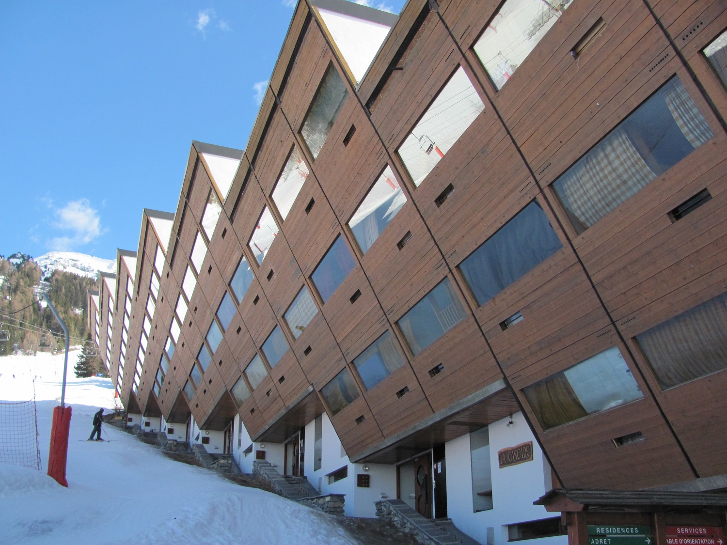 Façade atypique de l’ensemble architectural « La Cascade » de la station de sports d’hiver Arc 1600 photographiée le mardi 19 mars 2019. Copyright : Edouard Paris
