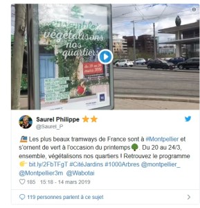 Dans un tweet daté du jeudi 14 mars 2019, Philippe Saurel, maire de la ville de Montpellier et président de Montpellier Méditerranée Métropole, écrit : « Les plus beaux tramways de France sont à #Montpellier …. »