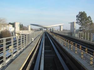 - Aperçu de la piste de roulement spécifique aux rames VAL 208 opérant sur la ligne a du métro de Rennes, le vendredi 4 janvier 2019. Au second plan, le terminus aérien « La Poterie ». Copyright : Edouard Paris