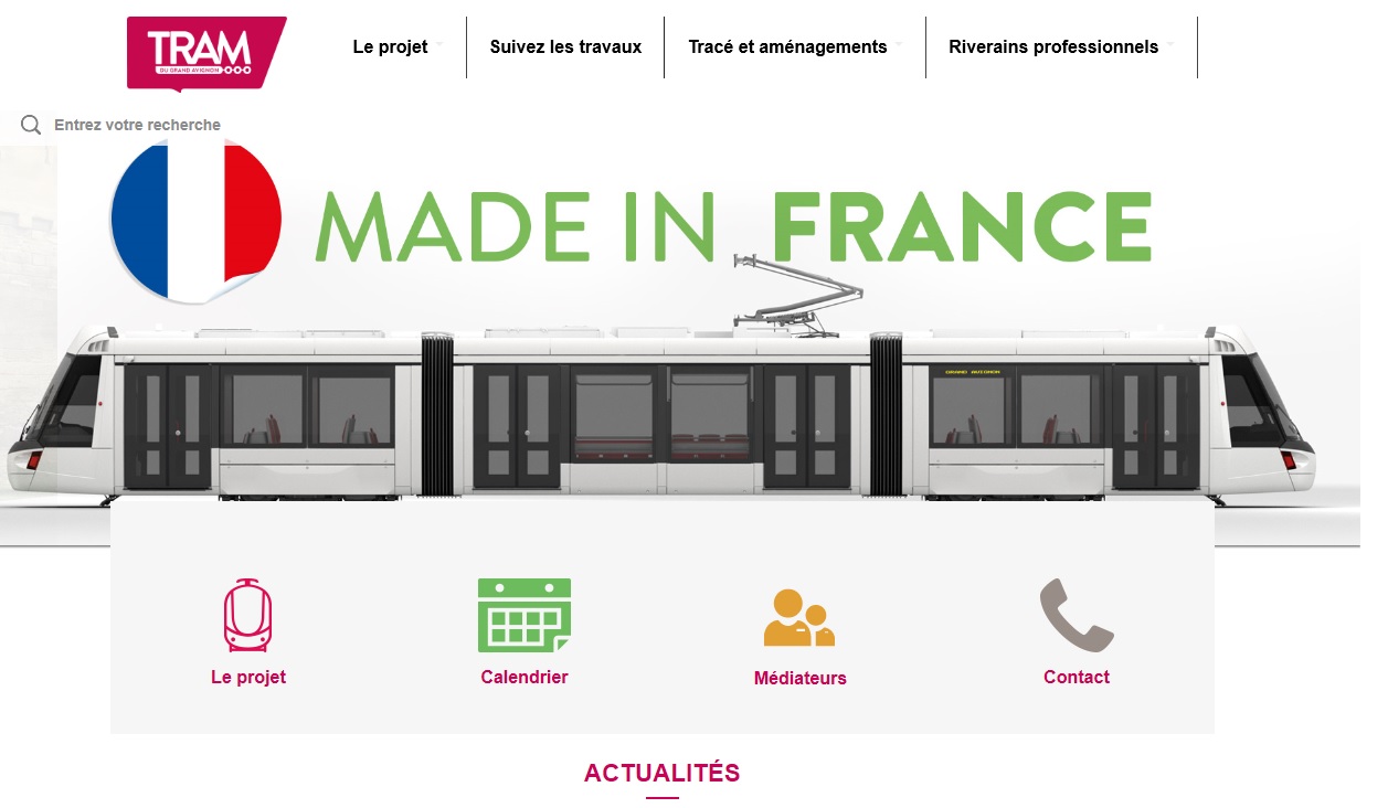 Capture d’écran partielle de la page d’accueil du site dédié « Tram du Grand Avignon », le vendredi 12 avril 2019. Document : Communauté d’Agglomération du Grand Avignon