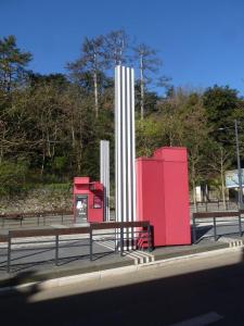- A Tours, colonnes de Daniel Buren et distributeurs automatiques de titres de transport photographiés à la station « Charles Barrier », le lundi 25 mars 2019. Copyright : Michel Bozzola