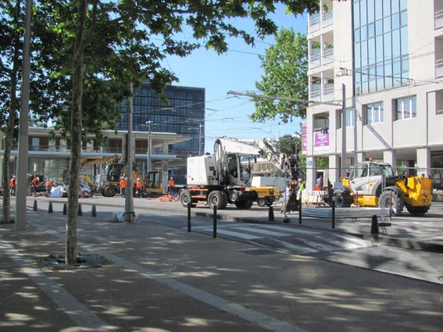 Travaux de rénovation de la voie ferrée et des appareils de voie dans le prolongement de la station « Moularès (Hôtel de Ville) », le mercredi 1er mai 2019. Copyright : Edouard Paris