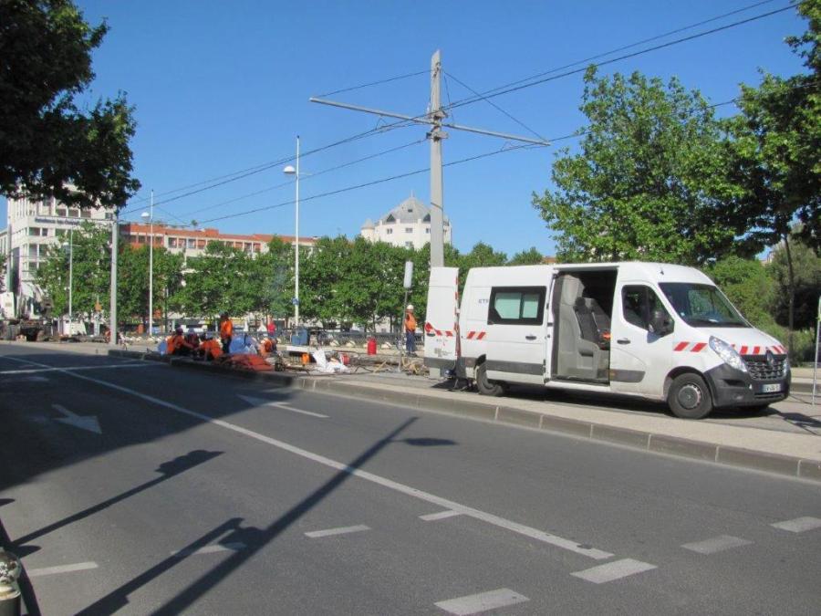Travaux de rénovation de la voie ferrée sur la partie est du pont Jean Zuccarelli à Montpellier, le mercredi 1er mai 2019. Copyright : Edouard Paris