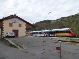 - L’autorail X 301 CFD Montmiral et l’autorail double motrice AMP 807/808 des Chemins de fer de Provence sont photographiés en gare de La Vésubie-Plan du Var, terminus provisoire de la ligne Nice – Digne en raison de travaux de voie en amont, le dimanche 7 avril 2019. Copyright : Michel Bozzola