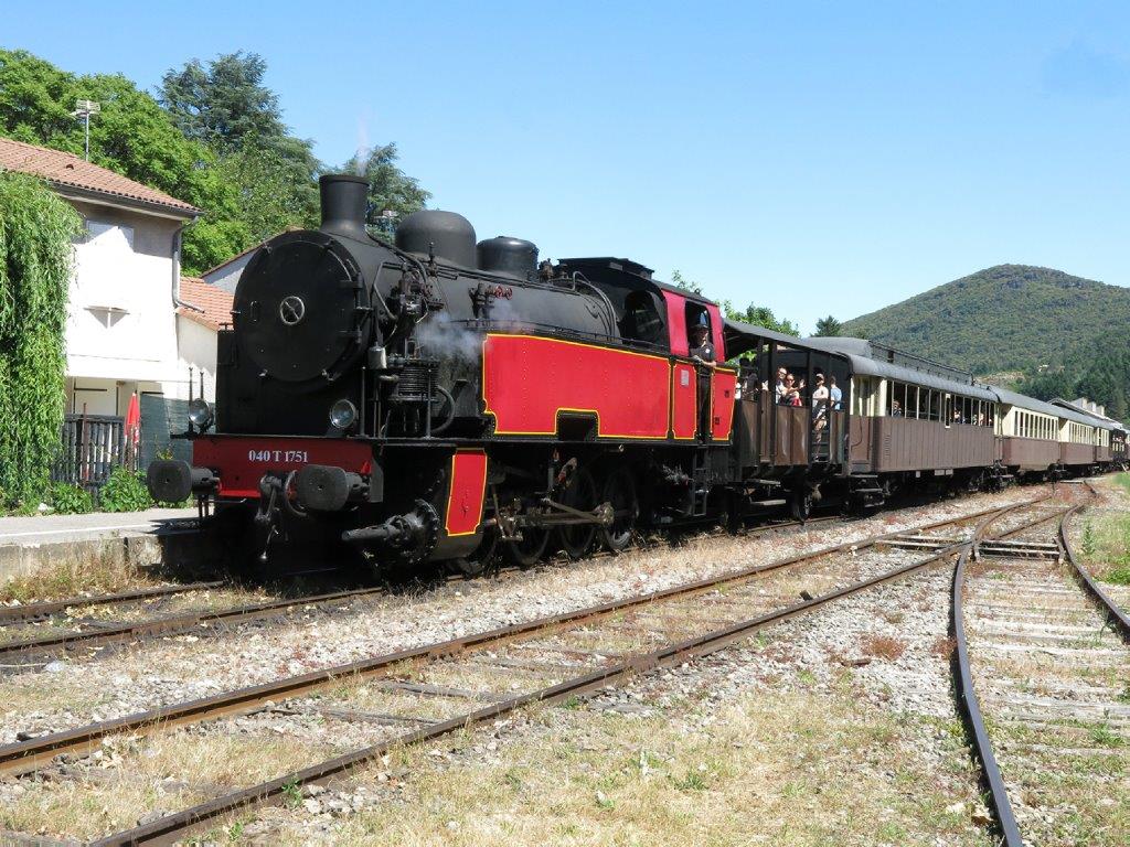 Arrivée du Train à Vapeur des Cévennes, locomotive allemande 040T 1751 Krupp (année de construction 1937) en tête, en gare de Saint-Jean-du-Gard, le dimanche après-midi 2 juin 2019. Copyright : jean-pierre Autié