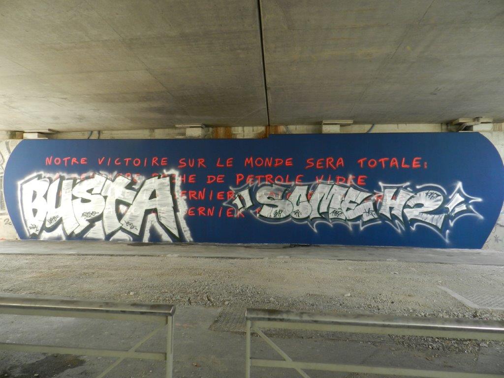 Sous le Pont-de-Sète à Montpellier, « Le Triomphe de Gilgamesh », une oeuvre signée Dominique Figarella, vandalisé. Photo prise le dimanche 9 juin 2019 à 18h41. Copyright : Anje34