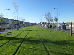 - A Nice, la plateforme de la ligne 3 de tramway est achevée entre les futures stations « La Plaine » (au fond) et « Les Arboras – Université ». Photo prise le lundi 8 avril 2019. Copyright : Michel Bozzola