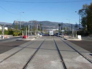 - A Nice, photo prise sur les voies du futur terminus « Saint-Isidore » de la ligne 3 de tramway, le samedi 6 avril 2019. Copyright : Michel Bozzola