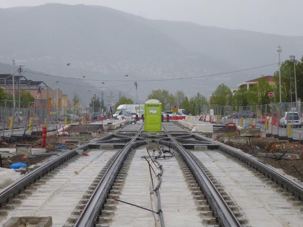 A Nice, photo prise sur les voies du futur terminus « Saint-Isidore » de la ligne 3 de tramway, le samedi 6 avril 2019. Copyright : Michel Bozzola