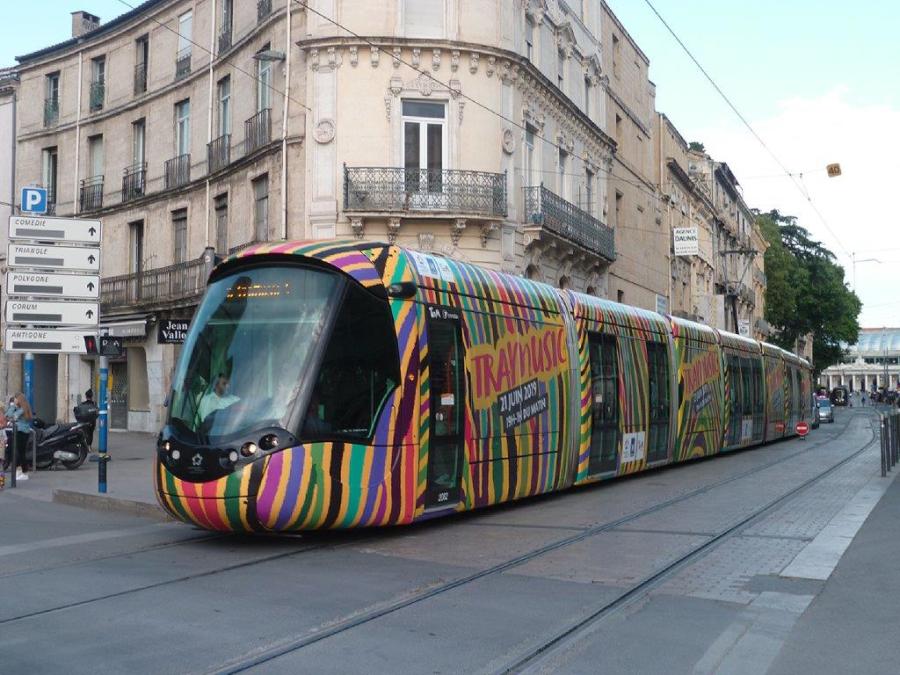 La rame 2082 Citadis 402 Alstom TraMusic est photographiée à l’approche de la station « Observatoire » commune aux lignes 3 et 4, le vendredi 21 juin 2019 à 19h47. Copyright : Edouard Paris