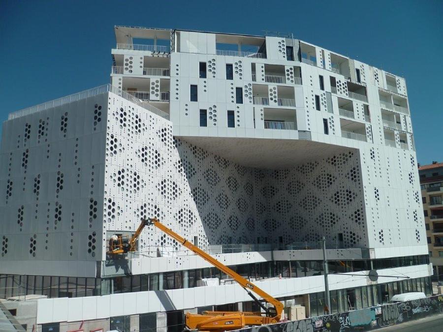 Vue, depuis le Pont-de-Sète à Montpellier, de l’ensemble architectural « Hôtel St-Roch – Belaroia » qui abritera un hôtel Campanile et un hôtel Golden Tulip, dont l’ouverture est programmée au lundi 8 juillet 2019. Photo prise le samedi 22 juin 2019. Copyright : Edouard Paris