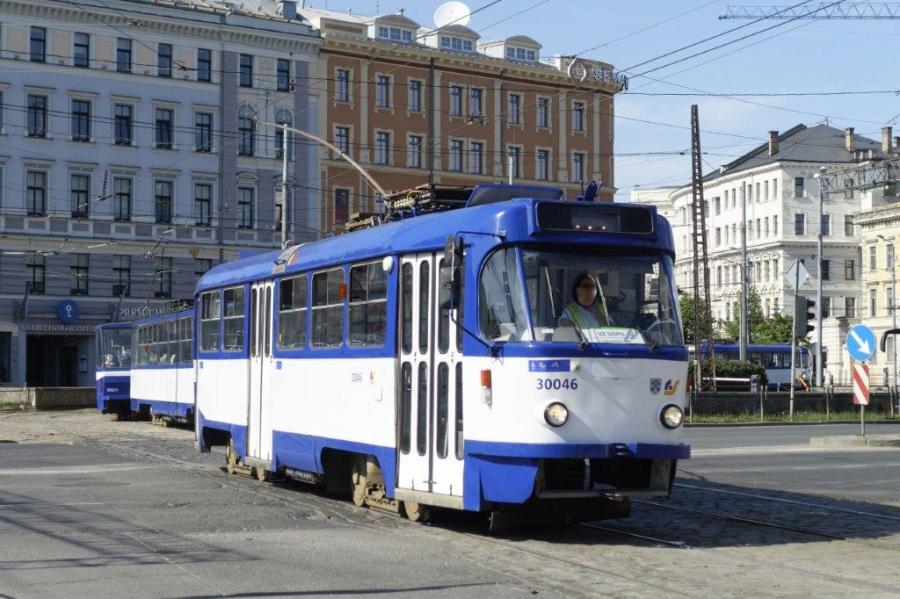 A Riga, la motrice 30046 T3A (exT3SU) ČKD Tatra (année 1977), rentrant au dépôt n°3, est photographiée au moment où elle franchit l’artère dénommée « 13. janvara iela », le samedi 18 mai 2019. Copyright : Yvon Brument