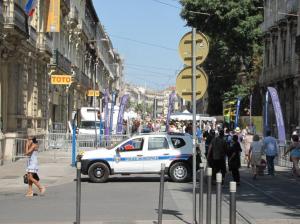 La démonstration sécuritaire, avec nombre de policiers, de barrières et de véhicules servant de barrage et même deux portiques de sécurité, est vraiment superflue car cela perturbe l’activité du centre-ville. Les lignes de tramway 3 et 4 ont été déviées pour un « pince-fesses » payé par les contribuables !