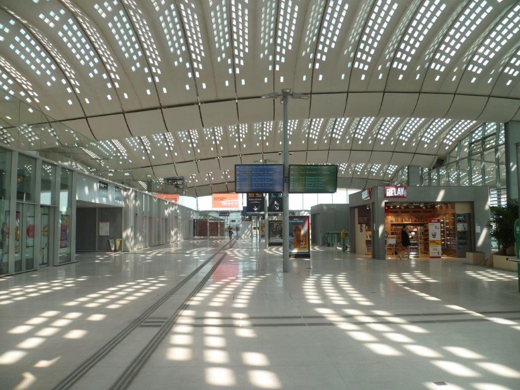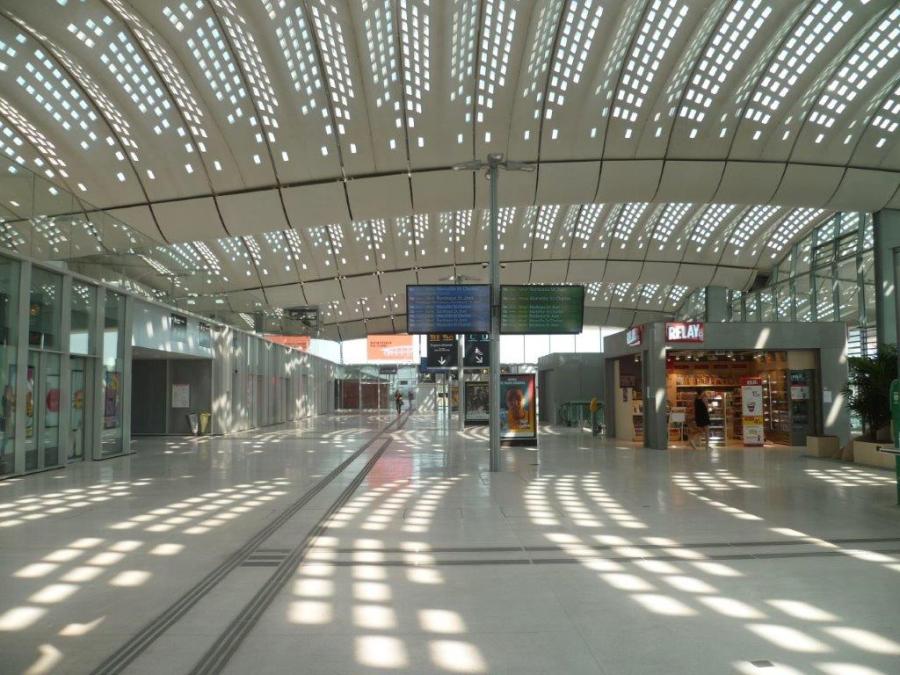 Vue partielle du hall voyageurs de la gare de Montpellier Sud de France, le dimanche 7 juillet 2019, jour de son premier anniversaire. Copyright : Edouard Paris