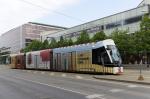 - A Tallinn, la rame 502 Urbos AXL CAF (année 2015), opérant sur la ligne 4 et habillée d’une livrée publicitaire assurant la promotion d’un festival de chants et de danse, est photographiée route de Narva, en centre-ville, tronc commun des quatre lignes du réseau de tramways de la capitale estonienne, le mercredi 22 mai 2019. Copyright : Yvon Brument