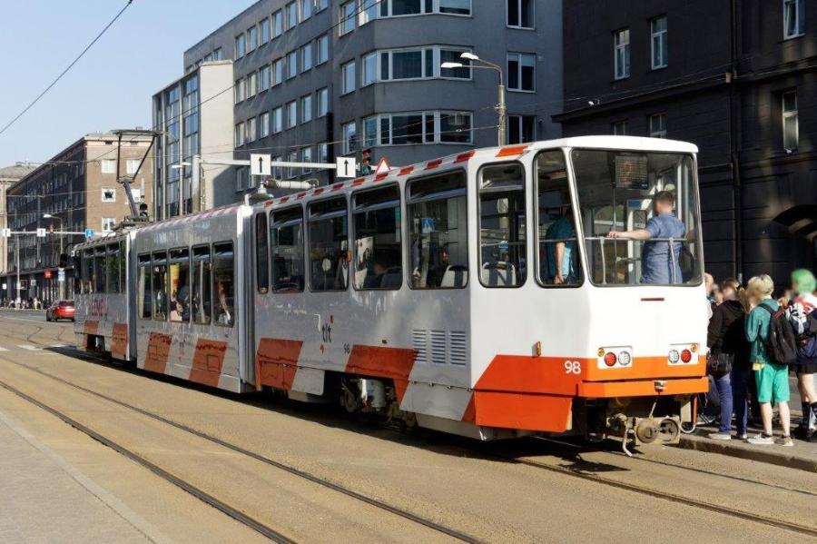 A Tallinn, la motrice triple caisse 98 Tatra KT6TM (année 1985), opérant sur la ligne 2, est photographiée à la station « Hobujaama » commune aux quatre lignes du réseau de tramways de la capitale estonienne, le mardi 21 mai 2019. Copyright : Yvon Brument