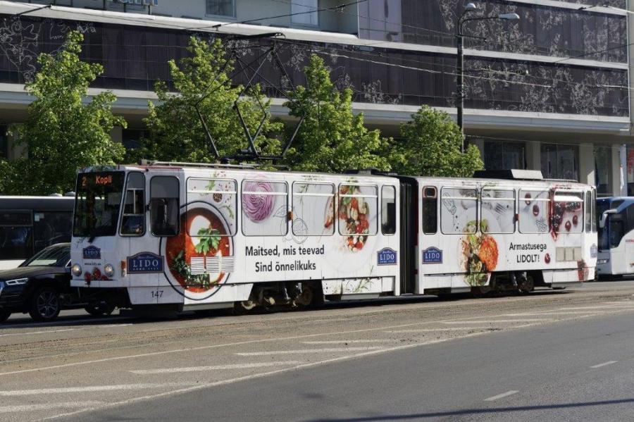 A Tallinn, la motrice double caisse 147 Tatra KT4D (année 1983 ex-réseau d’Erfurt), opérant sur la ligne 1, est photographiée route de Narva, en centre ville, tronc commun des quatre lignes du réseau de tramways de la capitale estonienne, le mercredi 22 mai 2019. Copyright : Yvon Brument