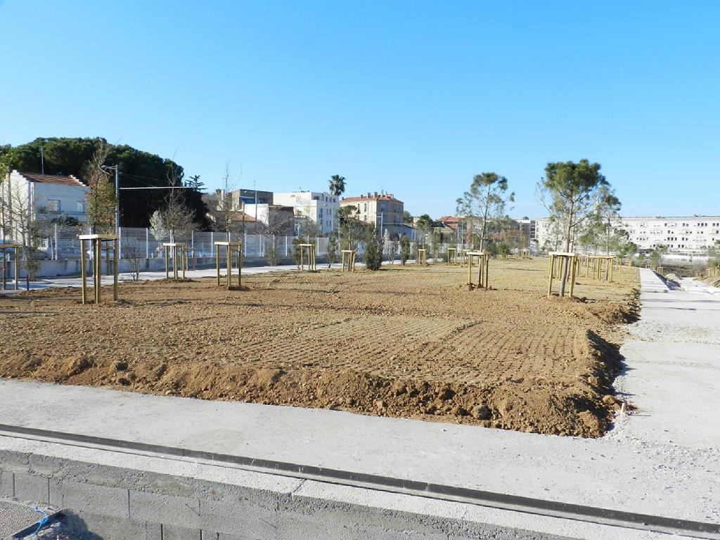 Vue partielle du futur parc René-Dumont à Montpellier, le mercredi 20 mars 2019. Copyright : Anje34
