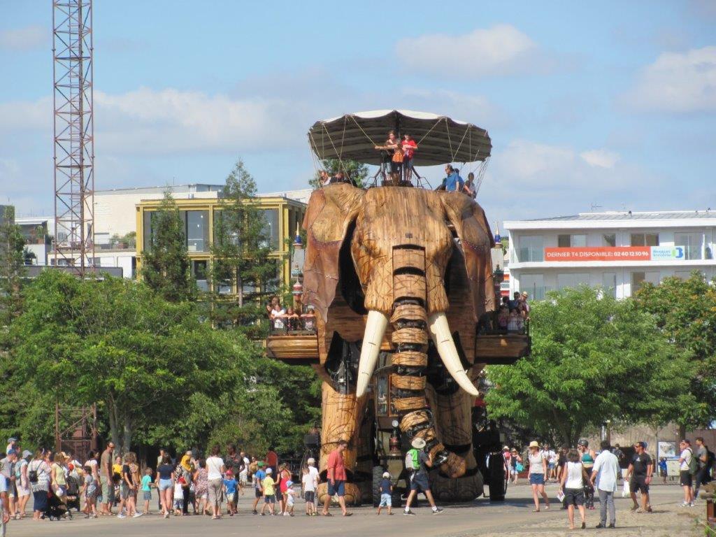 Sur l’île de Nantes, l’éléphant, une des emblématiques machines du parc des Chantiers. Photo prise le vendredi 19 juillet 2019. Copyright : Edouard Paris