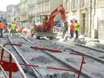 - Rue de la République à Montpellier, vue sur la communication après dépose du revêtement de la plateforme du tramway commune aux lignes 3 et 4, le vendredi 19 juillet 2019. Copyright : Anje34