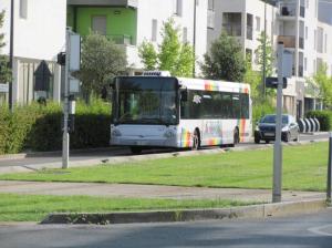 - A Angers, plateforme engazonnée de la ligne A de tramway à la hauteur du Centre Technique des Transports (CTT) Raymond Perron sur laquelle circule la rame 1006 Citadis 302 Alstom en direction du terminus « Avrillé – Ardenne ». Photo prise le mercredi 31 août 2011. Copyright : Edouard Paris