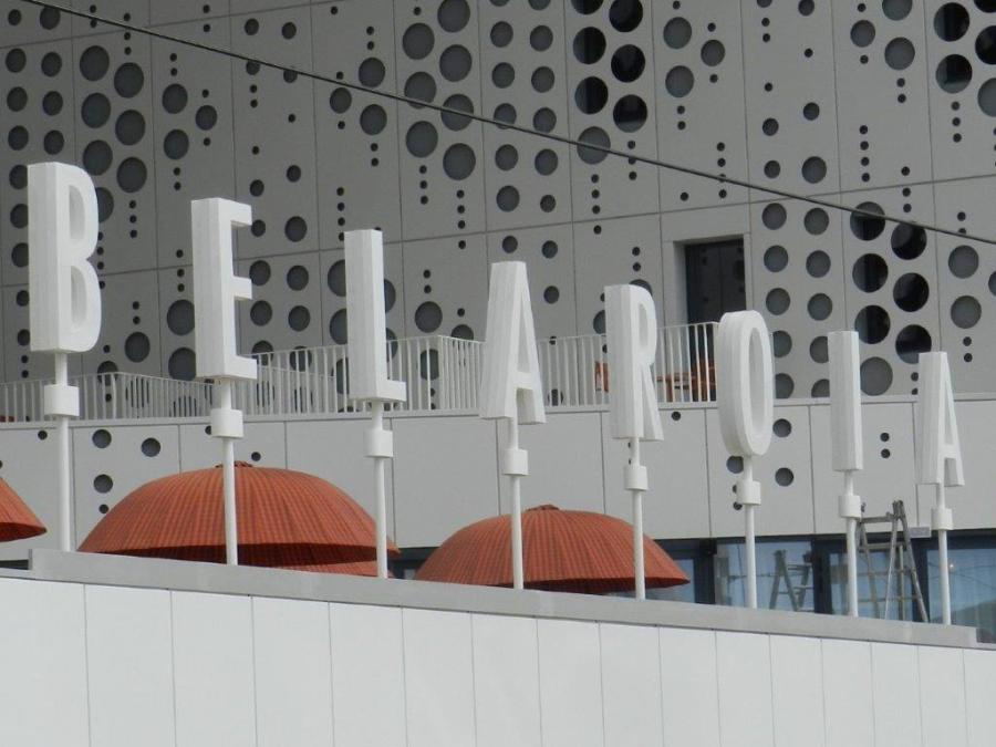 Gros plan sur les lettres formant le nom BELAROIA fixées, chacune sur un support, le long du garde-corps de la terrasse du bar mixologie rattaché à l’hôtel Golden Tulip Montpellier Centre Belaroia. Photo prise le jeudi 1er août 2019. Copyright : Anje34