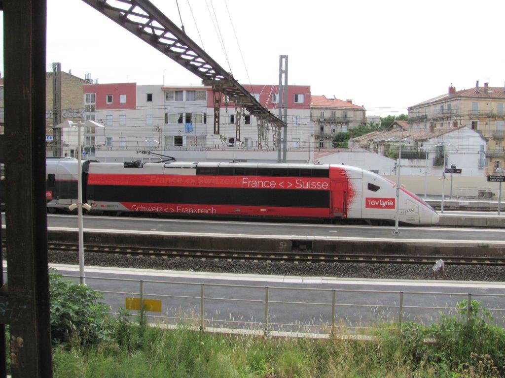 Motrice de tête de la rame 4725 Euroduplex 3UA, revêtue de la nouvelle livrée TGV Lyria, photographiée en gare de Montpellier Saint-Roch, le lundi 12 août 2019 à 11h45, assurant le TGV 6203 Paris gare de Lyon – Perpignan. Copyright : Edouard Paris