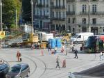 - Autre vue sur le chantier de rénovation de la voie ferrée du tramway place du 11 Novembre à Montpellier, le lundi 12 août 2019 en milieu de matinée. Copyright : Edouard Paris