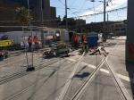 - Autre aperçu du chantier de rénovation de la voie ferrée du tramway, place Auguste-Gibert à Montpellier, côté rue Maguelone, le mardi 13 août 2019. Copyright : Anje34