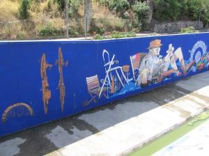 - Sur le mur opposé canalisant le cours d’eau le Verdanson, aperçu partiel de l’oeuvre commune des graffeurs réalisée dans le cadre du festival marquant le 30e anniversaire des premiers graffiti à Montpellier. Photo, prise le mercredi 14 août 2019. Copyright : Edouard Paris