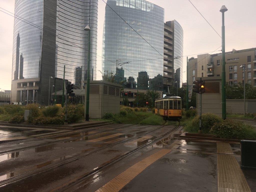 A Milan, la motrice 1926 de la série 1500 Peter Witt, opérant sur la ligne 10, vient de quitter la station « Stazione Garibaldi M2 M5 » sous la pluie, en direction du terminus nord « Viale Lunigiana », le mercredi 28 août 2019. Copyright : En passant par là