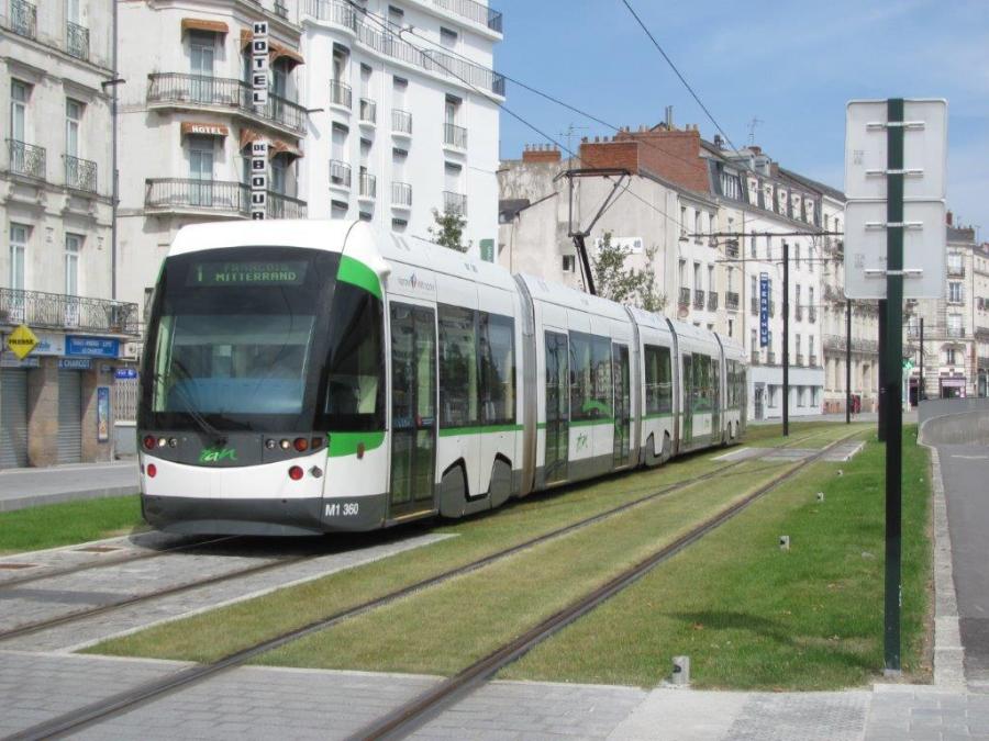 A Nantes, la rame 360 Incentro ADtranz est photographiée sur la ligne 1 entre les stations « Gare Nord – Jardin des Plantes » et « Duchesse Anne – Château », le lundi 26 août 2019. Copyright : Edouard Paris