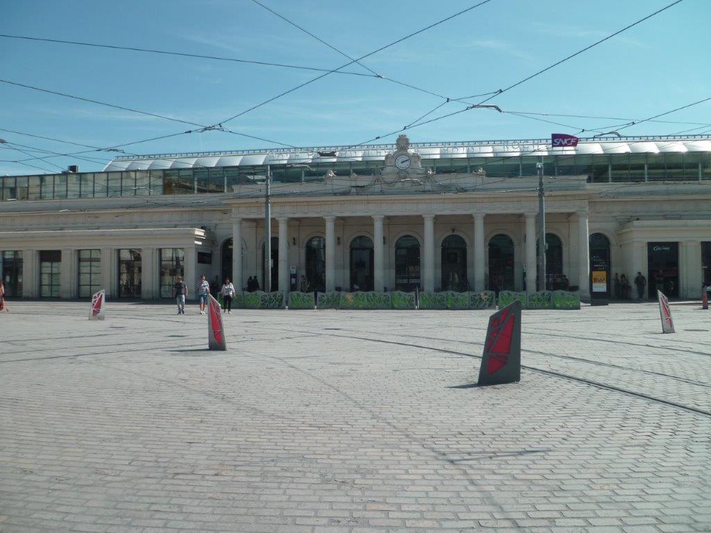 A partir du dimanche 15 décembre 2019, la gare de Montpellier Saint-Roch devrait perdre une quinzaine de mouvements TGV au bénéfice de la gare de Montpellier Sud de France. Photo du parvis de la gare de Montpellier Saint-Roch, le mercredi 11 septembre 2019. Copyright : Edouard Paris