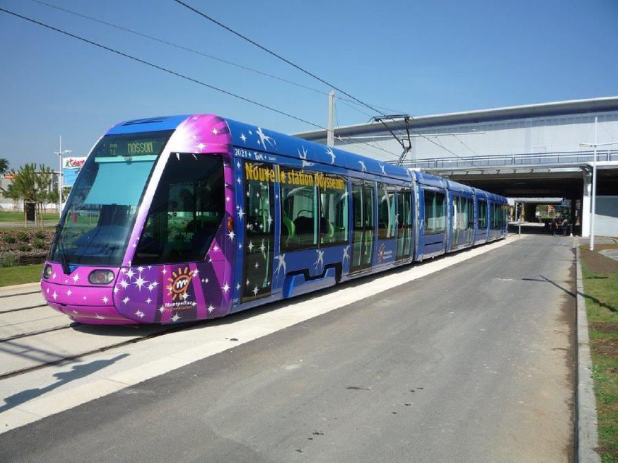 La rame 2021 Citadis 401 Alstom est photographiée sur une des deux voies en tiroir du nouveau terminus « Odysseum », le jeudi 24 septembre 2009. Copyright : Louis Ferdinand