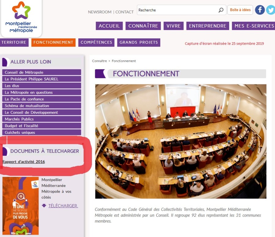 Capture d’écran de la page fonctionnement du site Montpellier Méditerranée Métropole réalisée le mercredi 25 septembre 2019