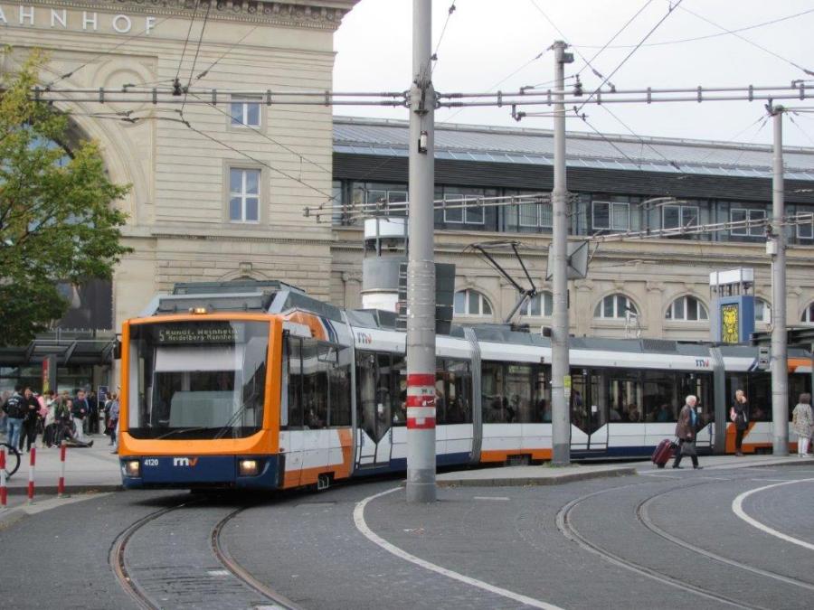 La rame 4120 V6 Variobahn ADtranz, opérant sur la ligne 5, quitte la station « Mannheim Hauptbahnhof » en direction de Heidelberg, le samedi 28 septembre 2019. Copyright : Edouard Paris