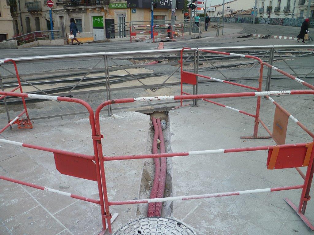 12 octobre 2019 – Pont-de-Lattes à Montpellier, les trous entre les rails ont été rebouchés