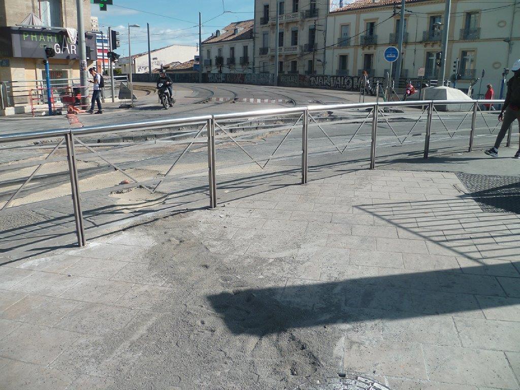 12 octobre 2019 – Pont-de-Lattes à Montpellier, les trous entre les rails ont été rebouchés