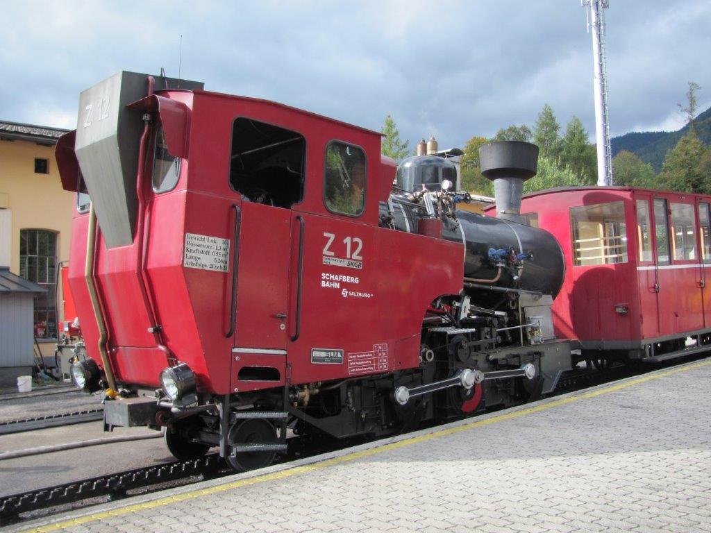 Photographie de la locomotive à vapeur à chaudière chauffée au fuel numérotée Z 12 (année 1995) du chemin de fer à crémaillère Schafbergbahn au terminus aval « St. Wolfgang valley station », le jeudi 3 octobre 2019. Copyright : Edouard Paris