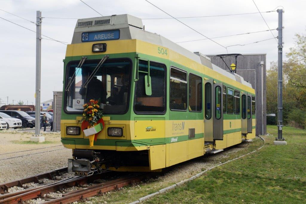 La motrice 504 Be 4/4 SWS/BBC (année 1981) est photographiée sur une voie extérieure du Musée du Tram d’Areuse, le dimanche 27 octobre 2019, jour de l’adieu aux motrices de la série 500 et aux voitures-pilote de la série 550 opérant sur la ligne 215 Littorail Neuchâtel – Boudry. Copyright : Yvon Brument