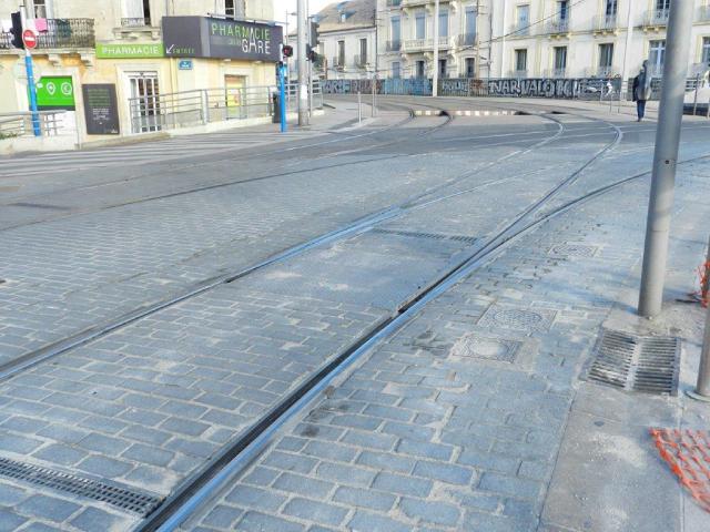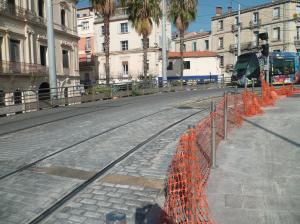 A Montpellier, les nouveaux pavés, qui habillent la plateforme du tramway commune aux lignes 1 et 3, ont enfin été posés à la jonction du haut de la rue Jules-Ferry et du Pont-de-Lattes. Il était temps !